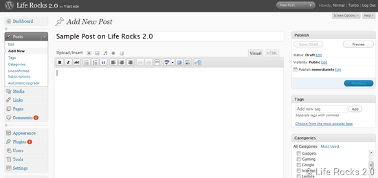 Apart from the visual changes and better navigation, one of the major changes is the automatic upgrade of Wordpress. The new version of WordPress includes a built-in upgrade that will automatically notify you of new releases, and when you’re ready it will download them, install them, and upgrade your blog with a single click.
